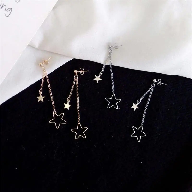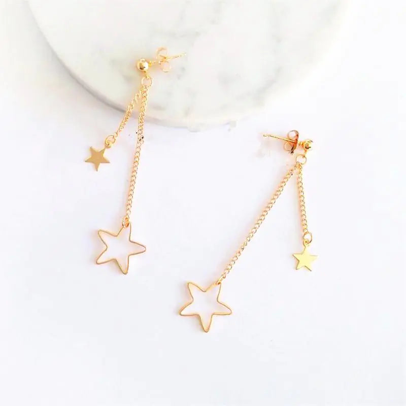 Elevate your accessory game with our stunning 流苏耳环. These long, dangling earrings feature a chic double-layer star design that adds a touch of elegance and whimsy to any outfit. Whether you're dressing up for a party, enjoying a casual day out, or looking for the perfect gift, these earrings are a fabulous choice!