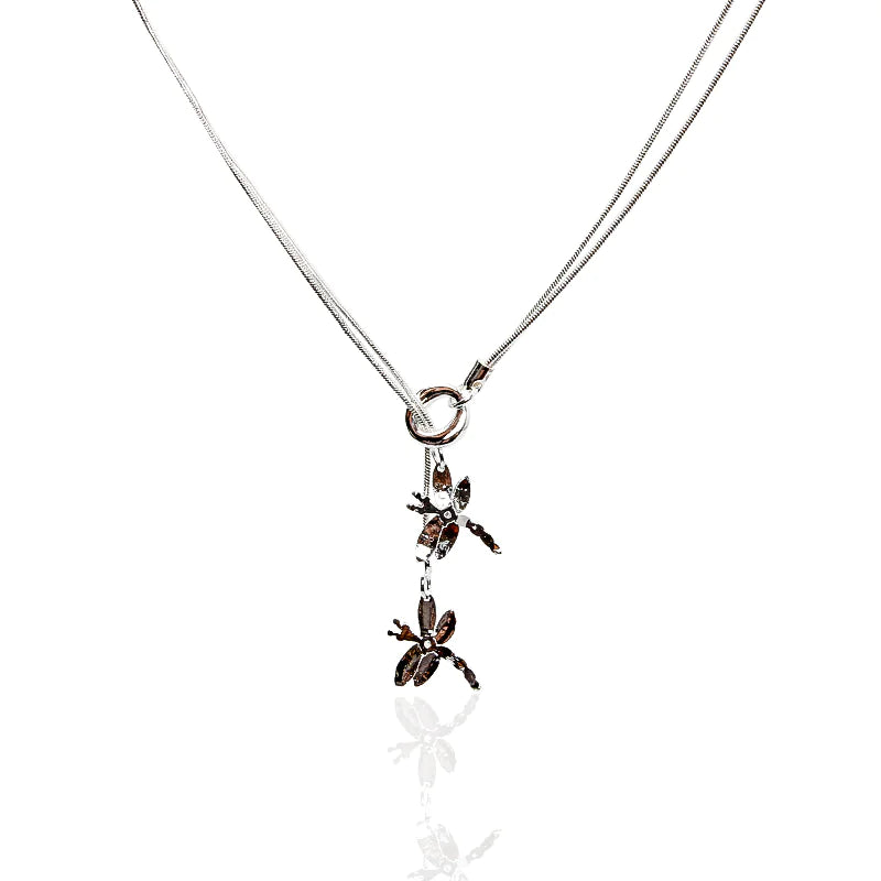 This exquisite necklace flaunts a delightful double dragonfly motif that infuses a dose of nature's charm into your wardrobe. The advanced electroplating technique employed guarantees an enduring gleam, allowing it to be a showstopper at both highbrow gatherings and everyday events.